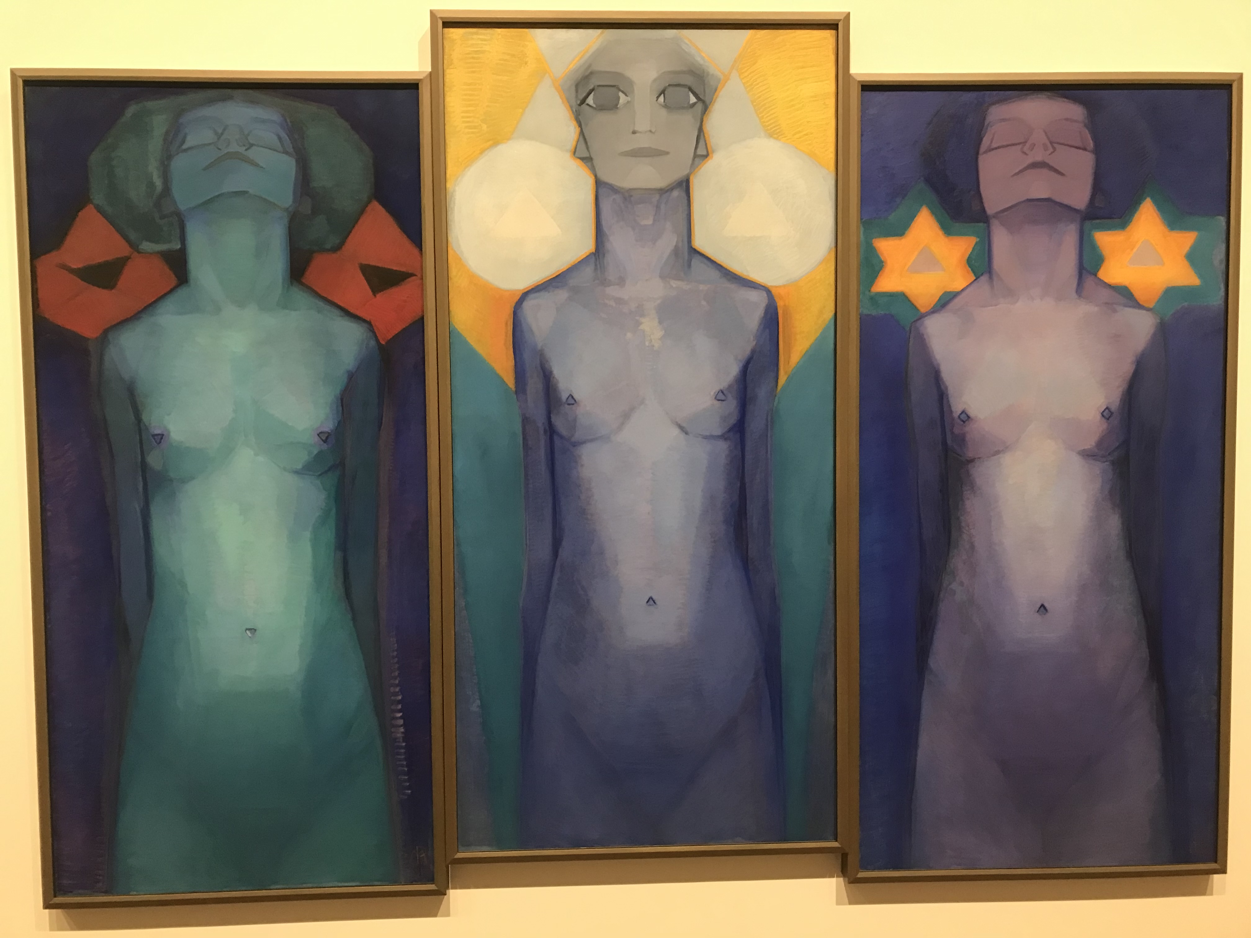 Klint is problematic in some respects. Most of her works were meant to illustrate her Spiritualist beliefs, and they are heavy with obscure meaning. She said that some were done with spirit guidance (which recalls some of Blake’s pictures, and there is a just a hint of his muscular symbolic figures in Klint’s stuff). She didn’t generally exhibit them, and it’s possible she wouldn’t have wanted them shown. I suppose the curators nevertheless see her as a significant gap in the story of art, but she seems well out of the mainstream. I must say that if her work had been shown in the sixties it might have found a following, and prints of her works might now be selling well alongside esoteric Tarot illustrations and mandalas in that kind of shop.