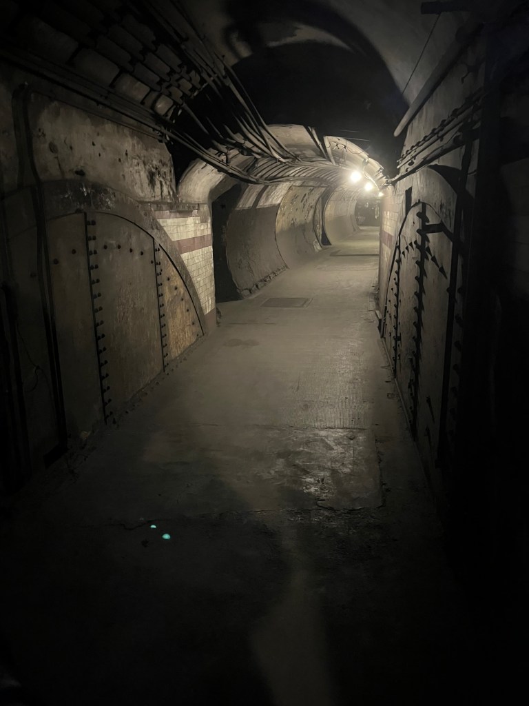 Conditions were not great, with corridors limited to the width of a standard tea trolley (obviously an essential). Yet people worked shifts, living in the station for weeks at a time without seeing daylight, putting up with limited bath and toilet facilities and rotating use of beds. The executive class were better looked after, with a kitchen that apparently served caviar and fine wines even at the height of the war. When peace came, it was pretty well abandoned, though it is still an official escape route from the Piccadilly line and the tube engineers make some use of it. There are plans to use its shafts to improve ventilation on the Piccadilly line, apparently.