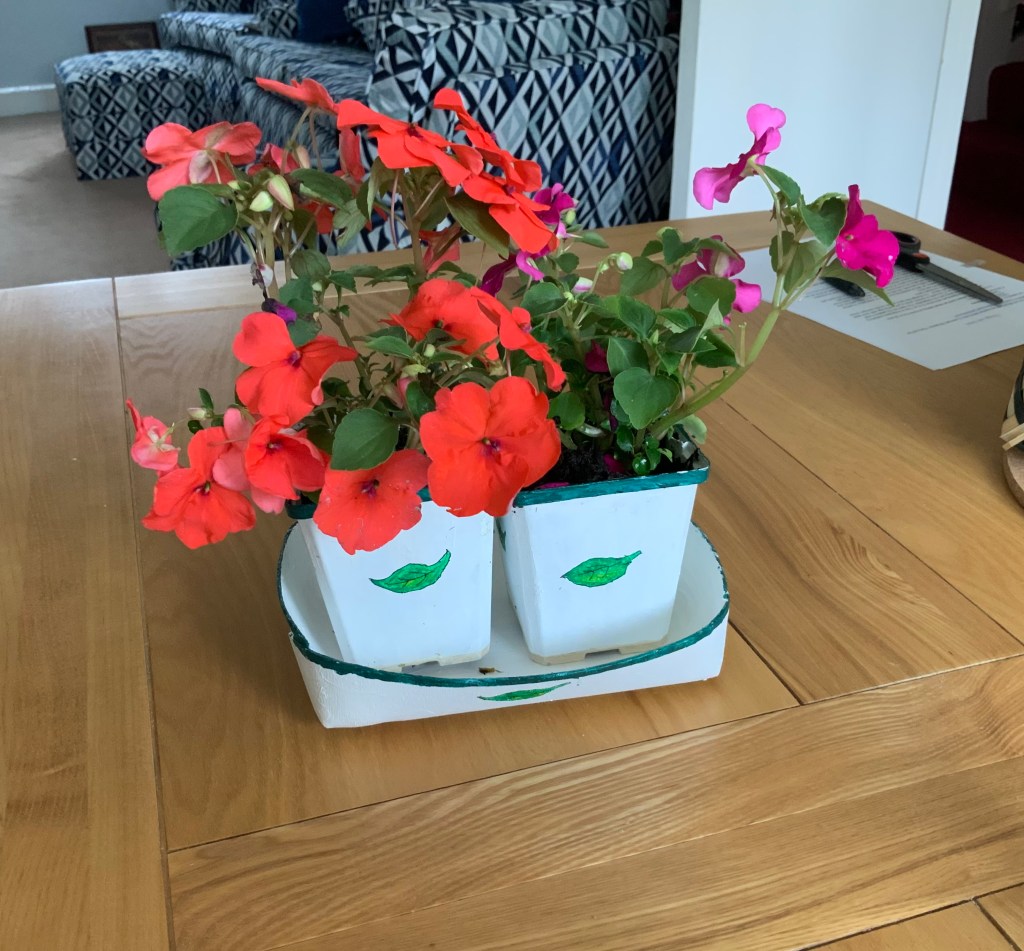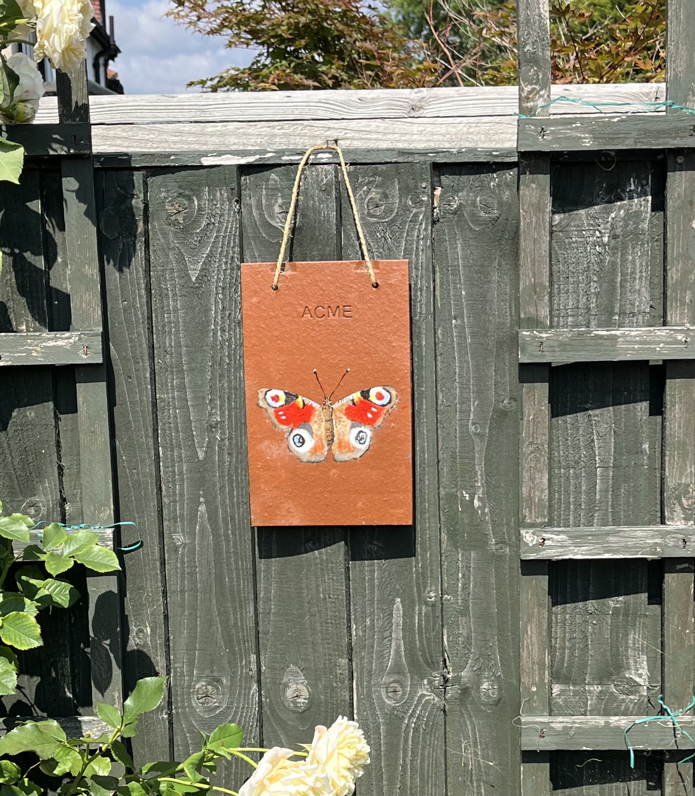 I drew out the design, traced it onto the tile, and filled in with gesso to provide a decent surface to paint on. Once painted I used a stencil to spray varnish on the painted area. It all worked OK, but I think the fact that I was copying meant I didn’t quite get the free, stylised look, and the colours are a bit light. Still, I quite like them!